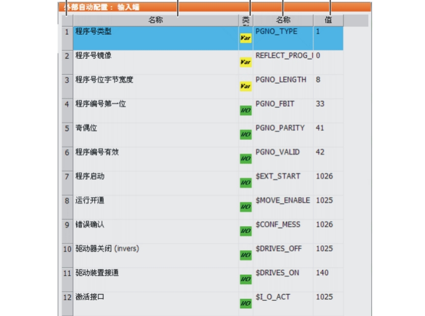 此变量确定了上级控制系统传送的程序编号的位宽。值域:1 … 16。