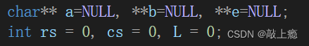 我们用a,b,e三个二级指针来模拟三个二维数组