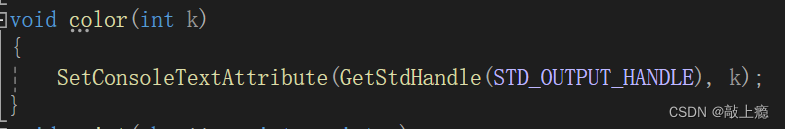 Sleep函数可以实现睡眠,Sleep(600)表示睡眠600毫秒用这样一个函数可以增加游戏效果,然后我们可以写一个color函数来设置控制台颜色入下: