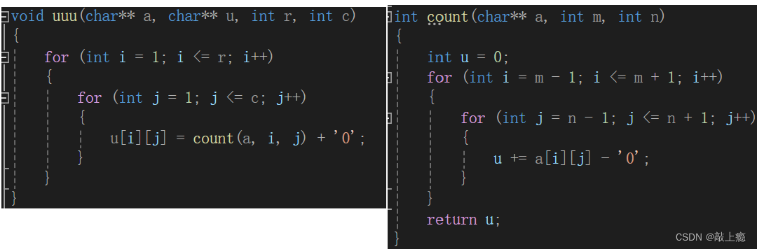 uuu(a, e, rs - 2, cs - 2);//计算每个坐标周围雷的个数并存入e中