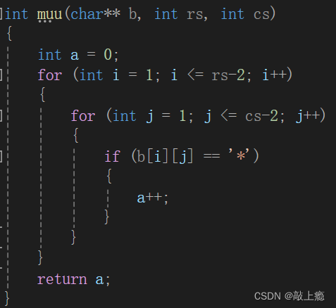 (2)游戏成功退出游戏我们可以写一个函数(muu函数)来计算剩余 ' * ' 的个数,如果为10则退出循环且呈现游戏胜利。