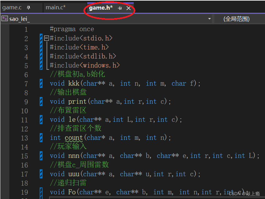 kkk,le,uuu这些函数可以写在game.c中,但要在game.h中声明。