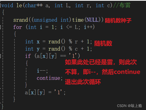 布雷是随机的,所以就要用到一个随机数,这里需要包含头文件<stdlib.h>和<time.h>