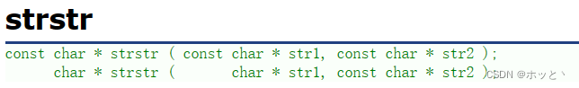 它的作用是在str1中找是否存在字符串str2,不存在返回NULL,存在则返回str2在str1中出现的第1个字符的地址,模拟实现如下: