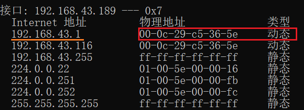 2.物理机查看网关mac地址(即查看arp缓存表)