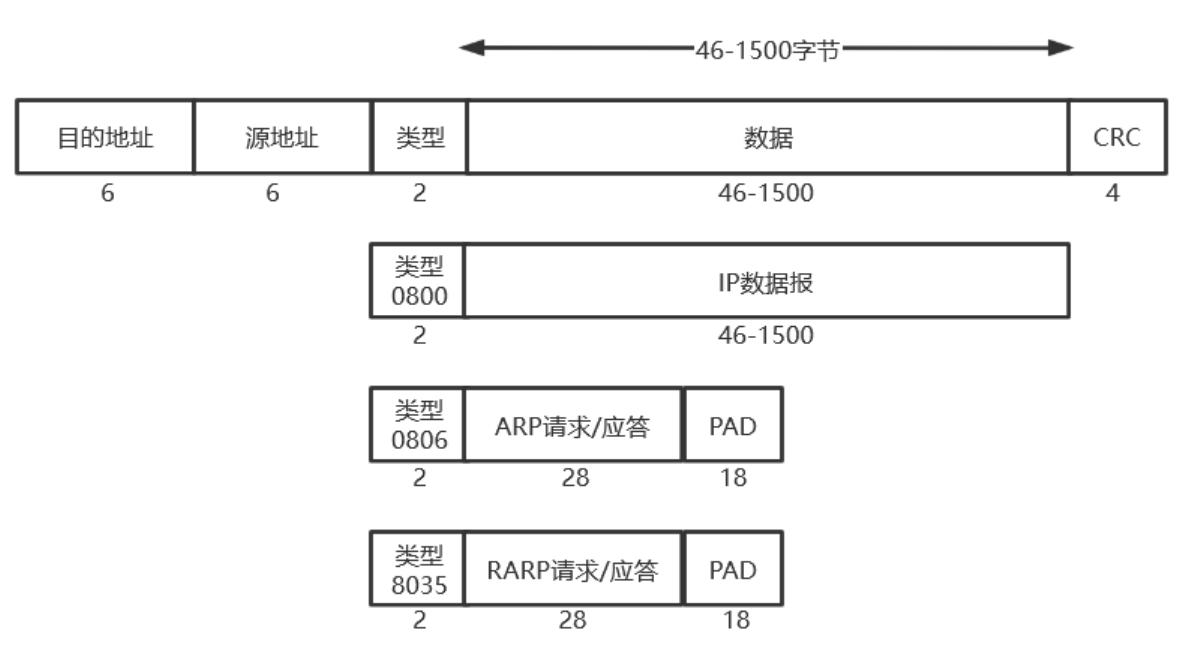 任何协议主要解决两个问题:如何分离数据?如何分用数据?从上述格式可知,以太网帧是固定长度协议,去掉头部和尾部固定字节就能得到有效载荷,而类型字段解决了分用问题。