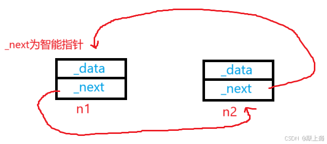 例如这样一个环形链表,当n1生命周期结束时发现,还有对象(n2的_next)在指向它,所以没有释放资源,当n2生命周期结束时发现还有对象(n1的_next)指向它,所以也没有释放资源。