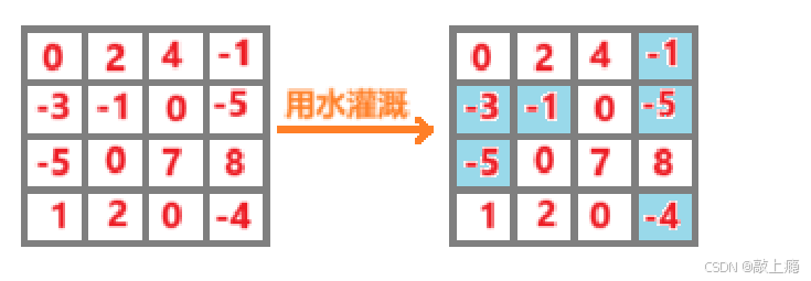 0表示平原,正数表示高地,负数表示凹地,那么当洪水来临时这些凹地会被优先灌满。而我们要找的正是这些联通块,如:
