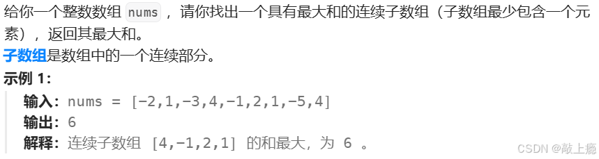 后面就根据具体的题目要求填写,可能是子数组的和或者子数组的积等等,无论如何都可以以i元素结尾的子数组为研究对象去思考问题,如果解决不了就尝试增加状态,但研究对象不要改变。如果还解决不了那么再考虑改变或增加研究对象。