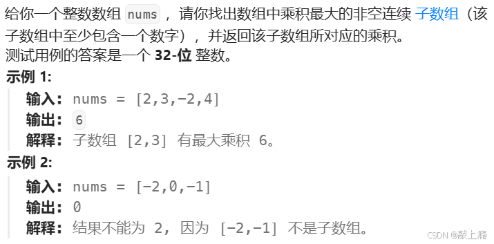 如果nums是一个负数不就变成最小乘积了吗,反之nums[i]小于0时乘以一个最小的数才能成为最大积。
