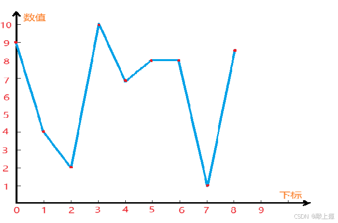 我们把数据的大小波动抽象成一条折线,如下把示例1化为折线图: