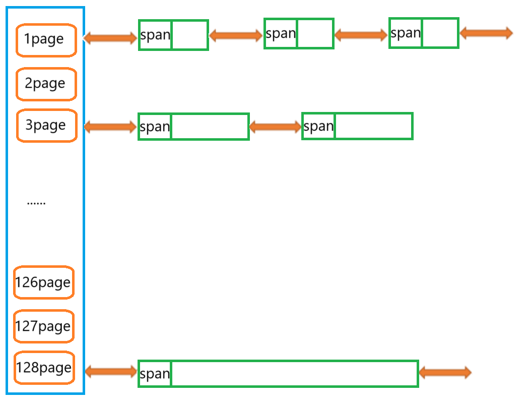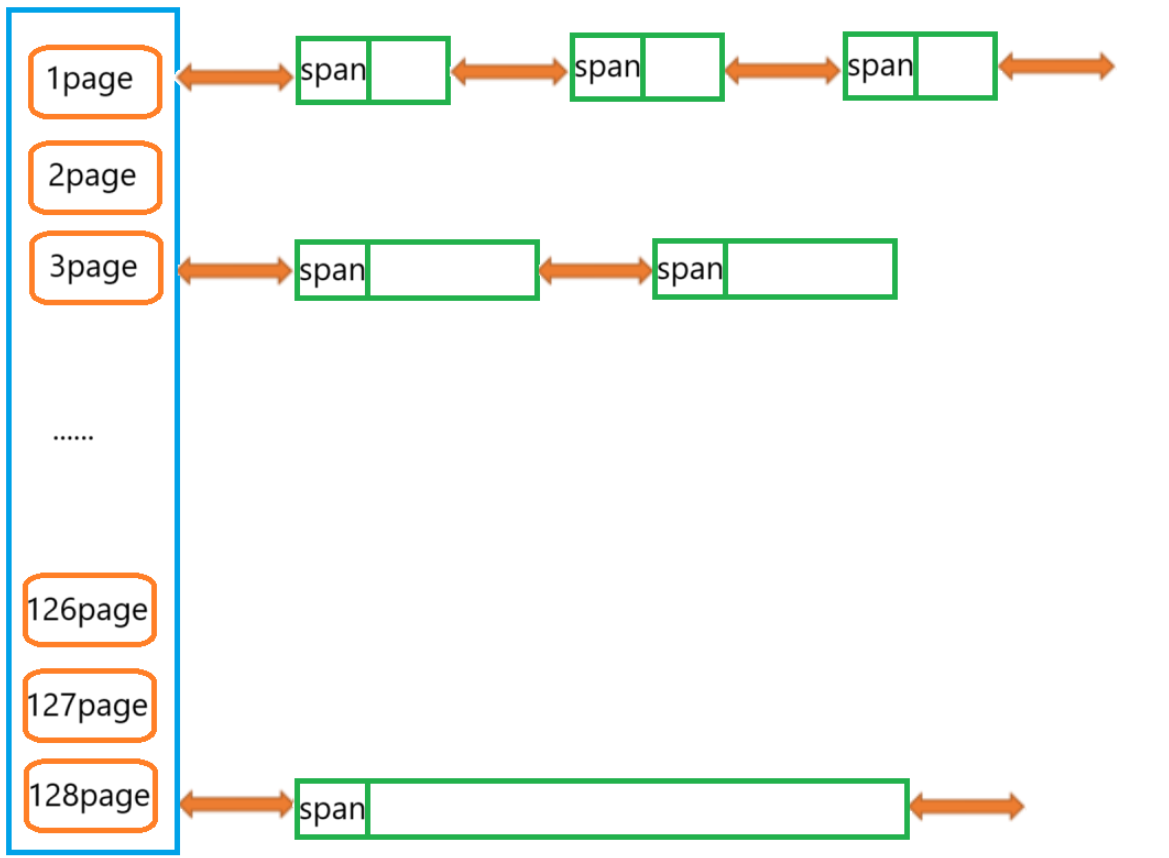 ⻚缓存是在central cache缓存上⾯的⼀层缓存,存储的内存是以⻚为单位存储及分配的,central cache没有内存对象时,从page cache分配出⼀定数量的page,并切割成定⻓⼤⼩的⼩块内存,分配给central cache。当⼀个span的⼏个跨度⻚的对象都回收以后,page cache会回收central cache满⾜条件的span对象,并且合并相邻的⻚,组成更⼤的⻚,缓解内存碎⽚的问题。