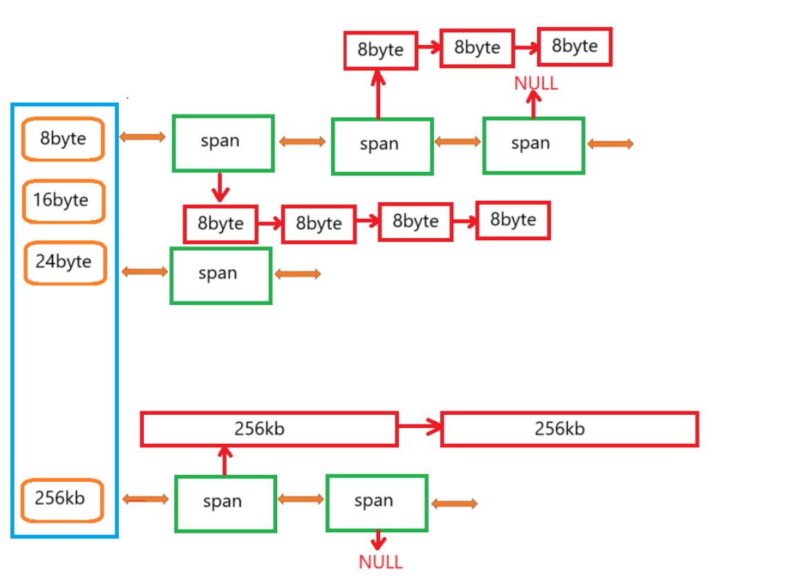 而tcmalloc在高并发场景下是如何高效、安全的分配和释放内存呢?它的设计核心如下: