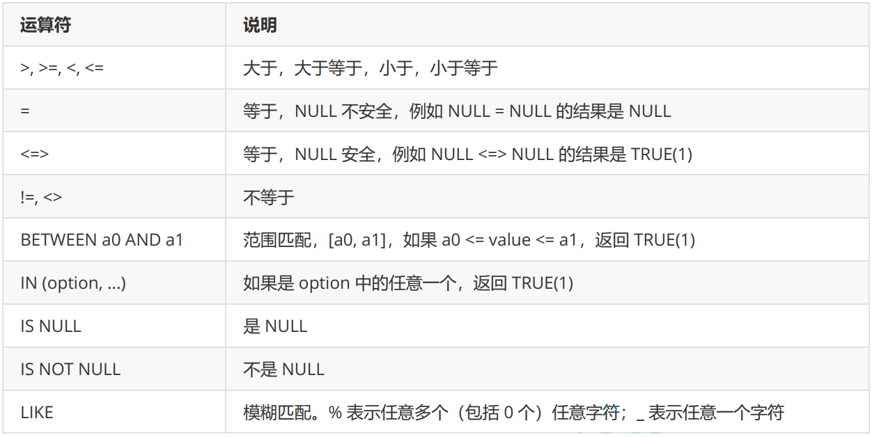 NULL=NULL结果还是NULL,因为NULL不可以用=比较,而是用<=>。通常用is null,is not null。