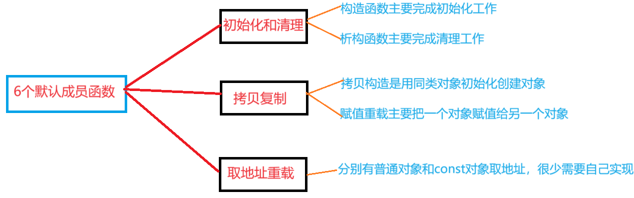 主要是完成清理工作,这个函数会在对象的主调函数结束的时候编译器会自动调用释放内存,一般这个函数都不需要自己写编译器会默认生成,对于动态申请的内存空间还需我们手动写一个析构函数去进行内存的释放。