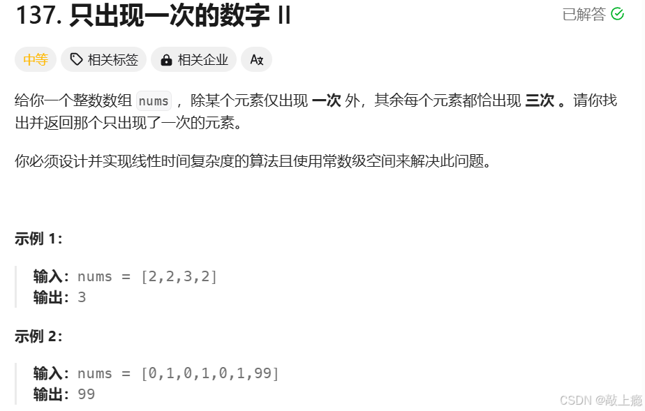 };137. 只出现一次的数字 II - 力扣(LeetCode)