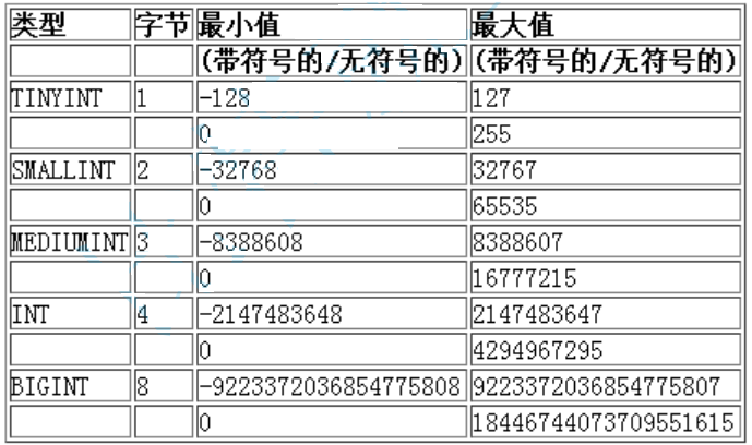 mysql> smallint、mediumint、int、bigint和tinyint原理都一样,只是占用字节空间不同而已,在开发过程中按所需空间大小选择就行。