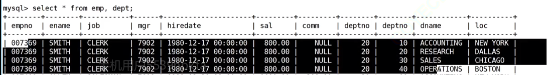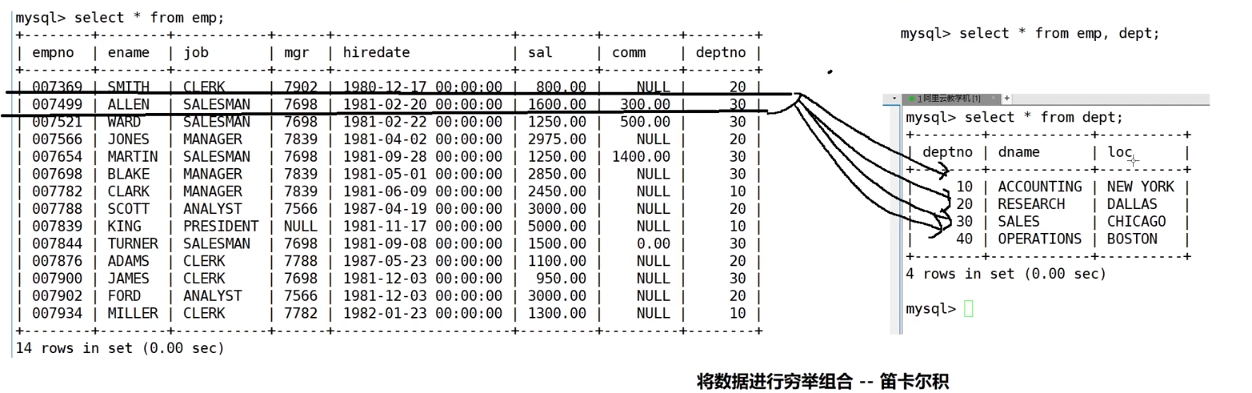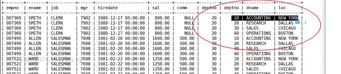 where e1.deptno=dept.deptno;注:查询出来的结果也是表!可以继续做笛卡尔积。