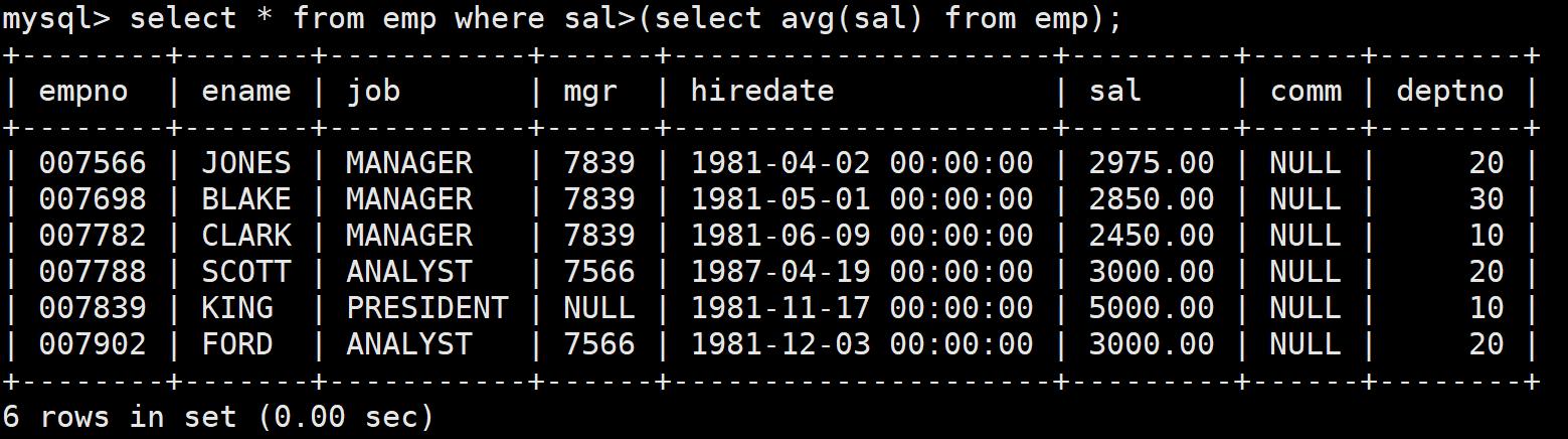 注:目前全部的子查询,全部都在where子句中,充当判断条件。任何时刻,查出来的临时结构,本质在逻辑上也是表结构。