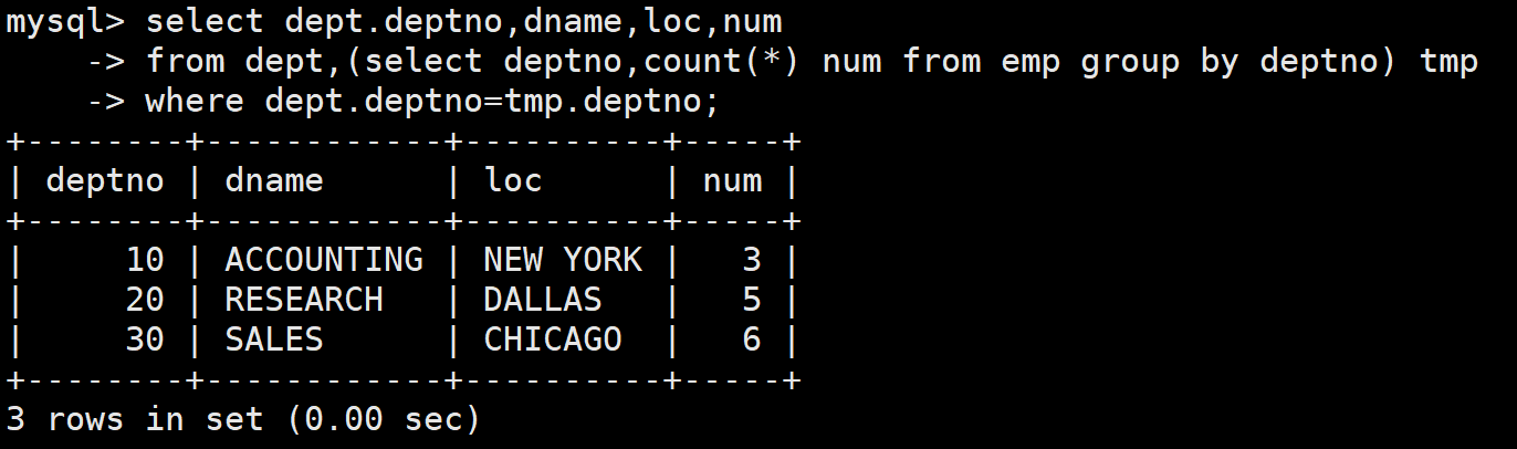 from dept,(select deptno,count(*) num from emp group by deptno) tmp