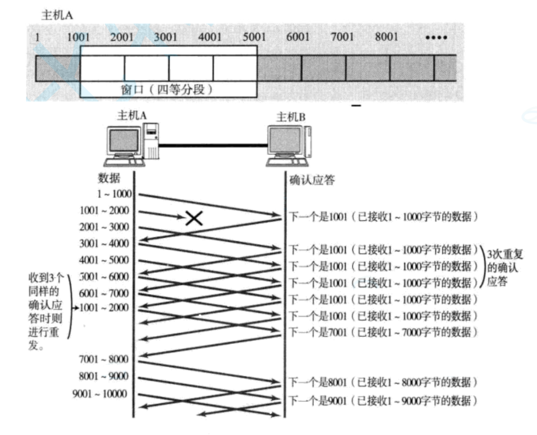 快重传:如果连续接收3个以及以上的相同ACK应答,那么判定为丢包,并进行重传。