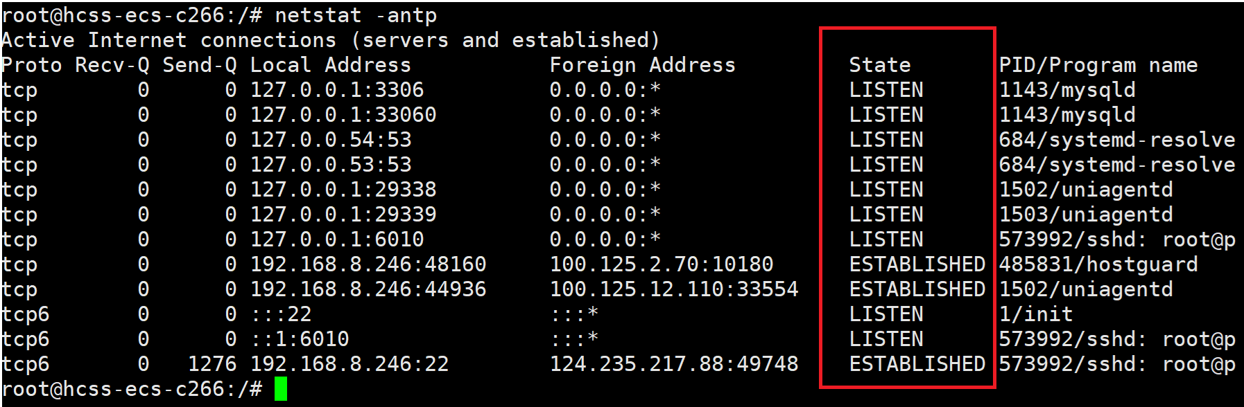 使用以下指令可以查看套接字状态: