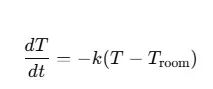 T = T_room + (T0 - T_room) * np.exp(-k * t)