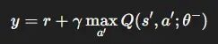 第二步,目标网络评估这个动作的价值:假设目标网络估计 Q(s′, a_2; θ^−) = 5.5。