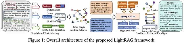 LightRAG 在构建 RAG 系统方面提供了相对完整的解决方案。相比传统的纯向量检索,它的核心特点是引入了知识图谱,能把非结构化文本组织成实体-关系网络,这种混合检索策略(语义向量+图谱关系)确实能让 LLM 获得更丰富的上下文信息。