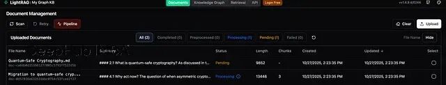 lightrag-server官方提供的 UI 界面做得还算不错,不过测试时基本没用上,因为更关注的是代码层面的实现。
