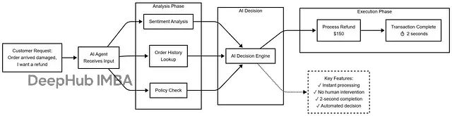 比如AI建议对损坏商品退款150美元,人类点了批准,系统就知道这个因素组合(损坏类型、客户等级、订单金额)适合150美元退款。