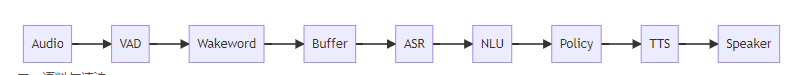 四、系统拓扑(Mermaid) 引子:声音是一条不稳定的河流。我们在语料的沙砾间清洗、在唤醒的涟漪里判断,在ASR与NLU的桥上与人交谈,再用TTS把冷静而温柔的回答送回空气。