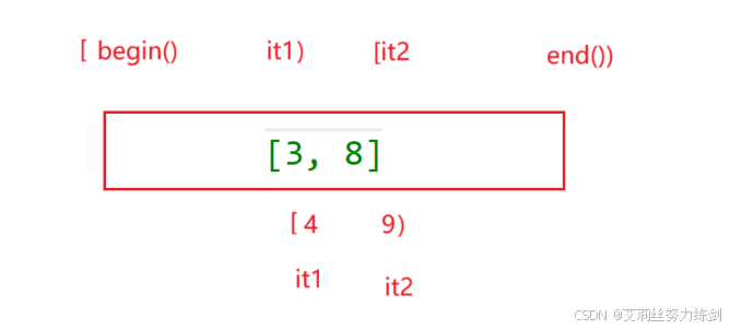 左闭右开,pair(It1 , It2),里面是迭代器,但是只有在类内部才能写迭代器。