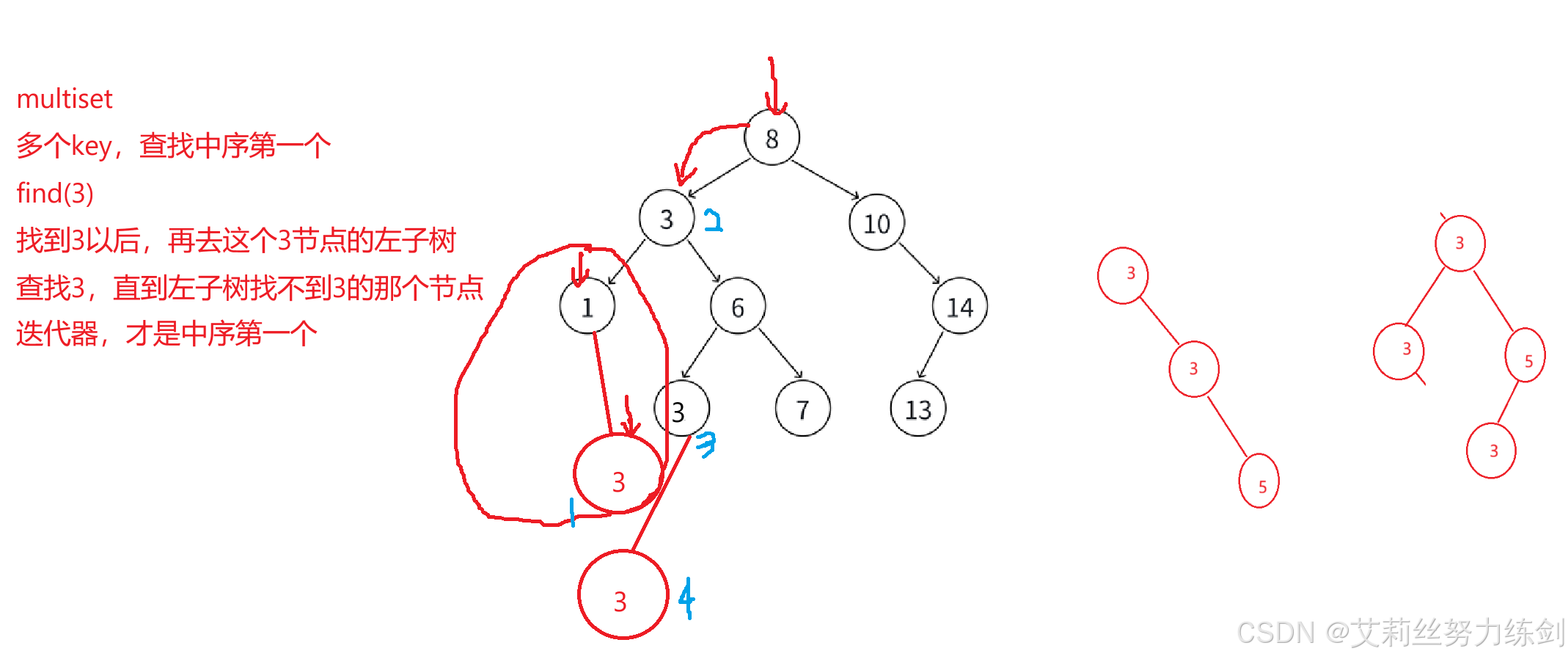 }比如查找3这个节点,如果有多个3节点,会查找中序遍历的第一个3节点——