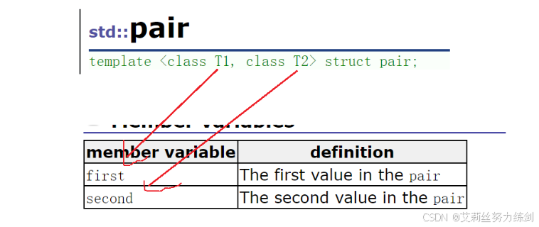 pair是库里面的类模板的结构,只是按struct公有定义——