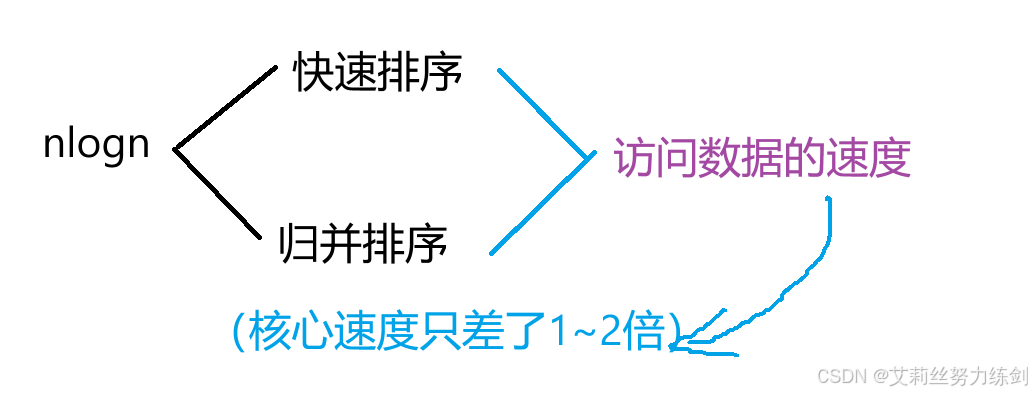 在STL中,vector的sort随机访问迭代器下的快速排序(平均时间复杂度O(nlogn)),而list的sort双向迭代器下的归并排序(稳定时间复杂度为O(nlogn));数据量大时不建议用list的sort
