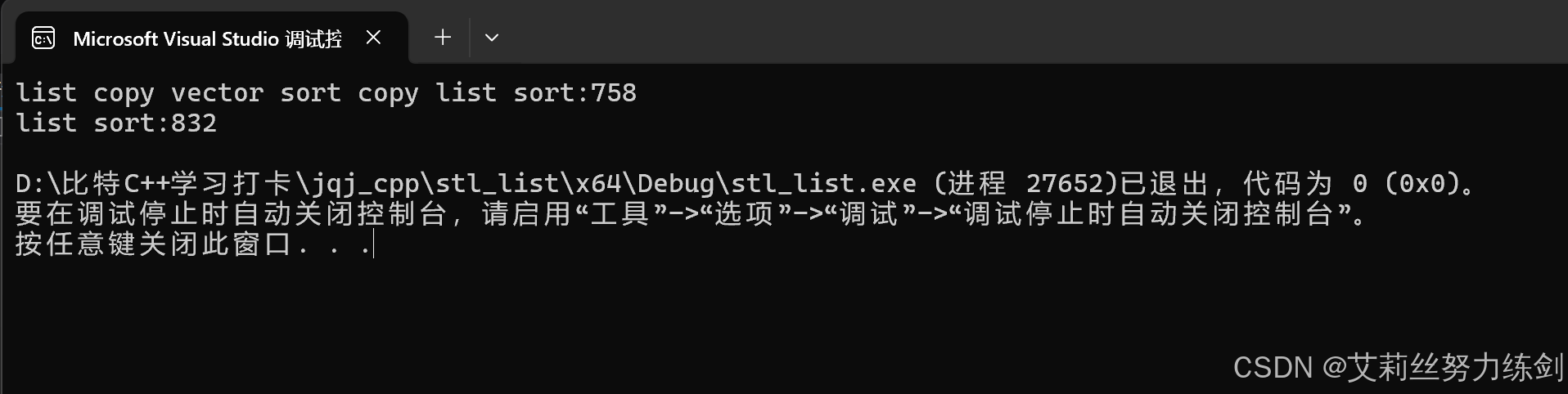 printf("list copy vector sort copy list sort:%d\n", end1 - begin1);