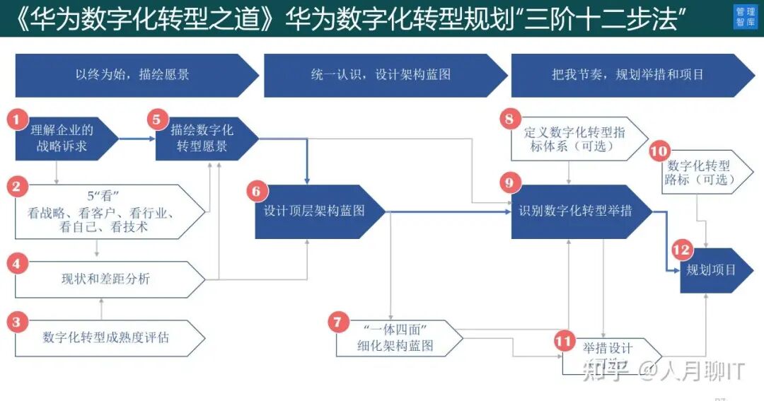 要深入理解和学习华为数字化转型,需重点关注其核心概念。从战略规划设计到企业架构规划,再到四层架构、IPD集成产品研发,以及项目组合管理与项目管理,这些内容相互衔接、集成。