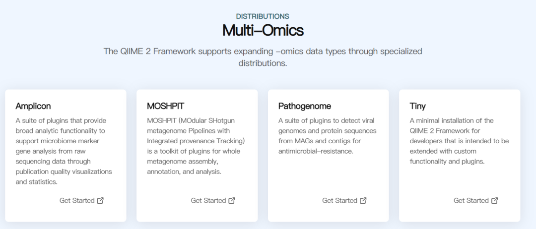 QIIME 2 的架构采用模块化设计,插件系统使得功能扩展变得非常灵活。研究者可以根据自己的需求开发新插件,或组合已有插件形成定制化工作流。目前平台已推出多个“分布版”,例如扩增子分析套件、MOSHPIT 宏基因组工具包、致病基因组检测模块,以及面向开发者的最小框架版,覆盖了从基础研究到临床应用的广泛场景。