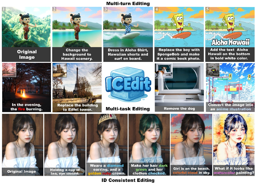 论文地址:https://arxiv.org/pdf/2504.20690 项目主页:https://river-zhang.github.io/ICEdit-gh-pages/ 代码仓库:https://github.com/River-Zhang/ICEdit Hugging Face演示:https://huggingface.co/spaces/RiverZ/ICEdit