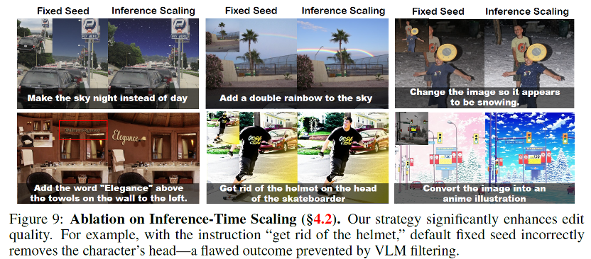 图注:不同初始噪声编辑效果不一,采用inference time scaling策略筛选更好的结果