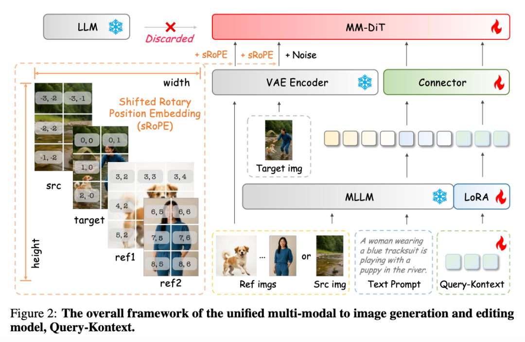 引入了 Query-Kontext 方法,通过多模态“kontext”将视觉语言模型(VLM)与扩散模型连接起来。这种设计将多模态生成推理的复杂能力交给 VLM,而扩散模型负责高质量视觉合成。