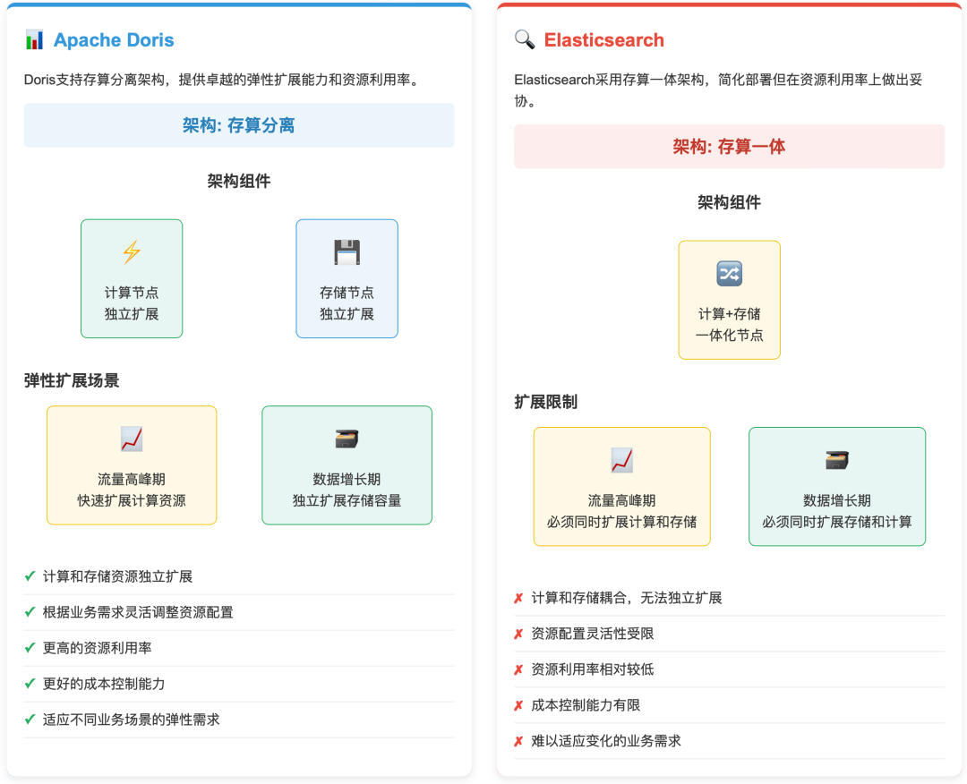 相比之下,Elasticsearch的存算一体架构虽然简化了部署,却在资源利用率上做出了妥协。