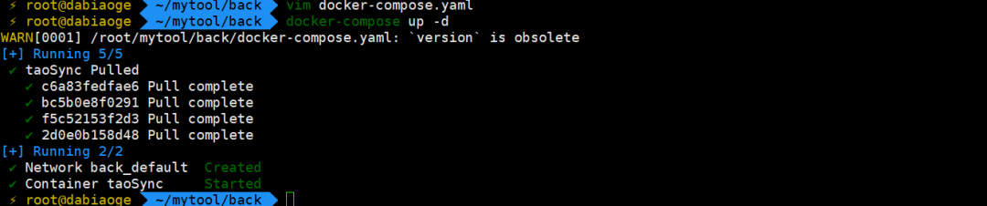 TaoSync的部署很简单,我们通过Docker进行部署。 我们在项目文件夹添加docker-compose.yaml文件。内容如下: