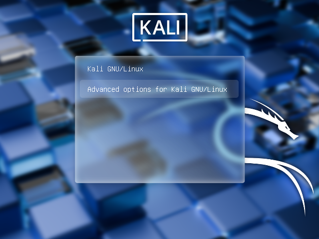 在进入Kali 引导后。我们进入高级引导程序。