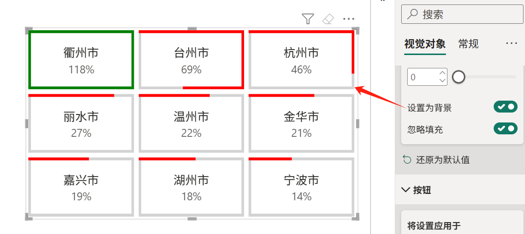 把度量值放入按钮切片器图像区域: