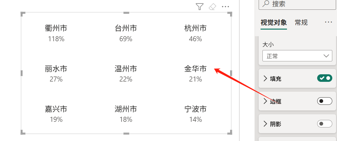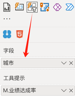 首先,将需要展示的字段拖入按钮切片器视觉对象: