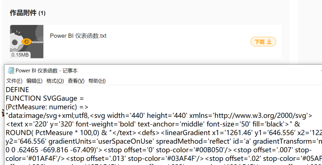SVG代码是直接从EasyShu的SVG文件复制的,没有在Power BI简化,超出了公众号字数限制,我把它存放在一个text,此处下载: