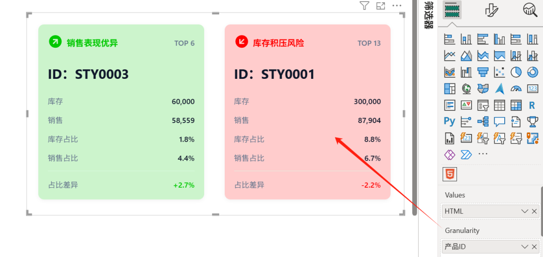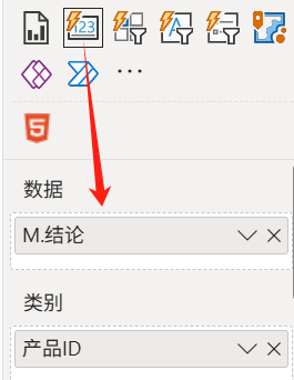 首先可以用新卡片图视觉对象,数据拖入一个指标,类别拖入产品ID: