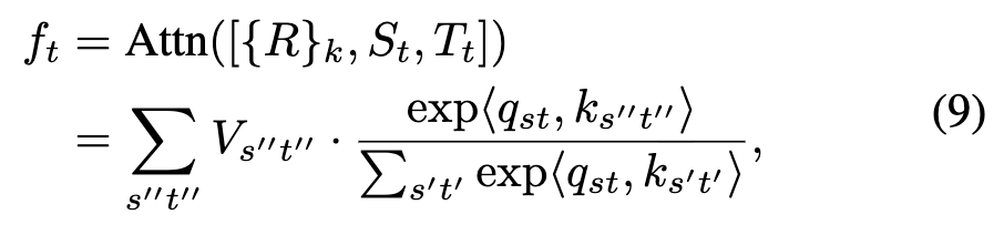 其中 是第 个视频帧的时序令牌序列。 表示令牌间的拼接操作。, 和 是拼接后特征令牌的时空线性投影。